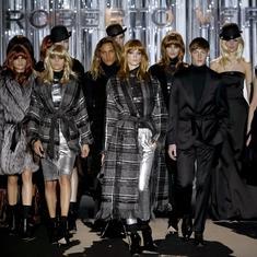 Los colores otoñales en vestidos rectos a la rodilla se cubrieron de prendas de alta peletería, mientras que la fantasía se apoderó de la noche. Tejidos emblemáticos de la cultura urbana británica como el vinilo o los plateados glam compartieron pasarela con lanas envolventes. Para él, trajes masculinos de Príncipe de Gales, gabardina y jerséis a juego o abrigos rectos de paño en tonos marrones y aceite.