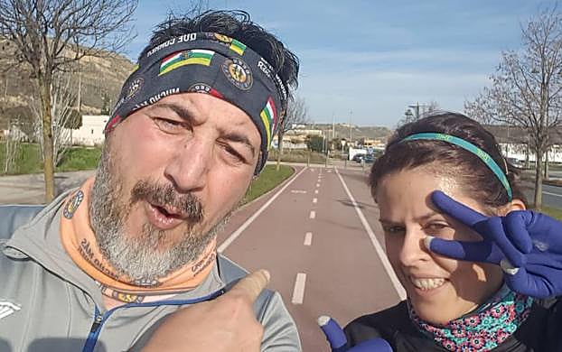 Rebeca Tolosana «Entrenamiento en el Campillo de un 'beerrunner' riojano y una 'beerrunner' maña. Juntos es mejor, más motivador y divertido».