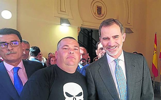 L.R. El cerverano Carlos Lacruz, de la cuadrilla de aficionados taurinos Polinar, con el Rey Felipe VI en la corrida de la Beneficencia en la plaza de Las Ventas.