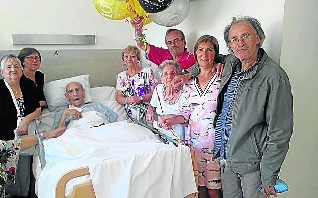 L. R. Familiares y amigos acompañaron a Marino Ibáñez Romero en la celebración de su centenario en la residencia que le acoge.