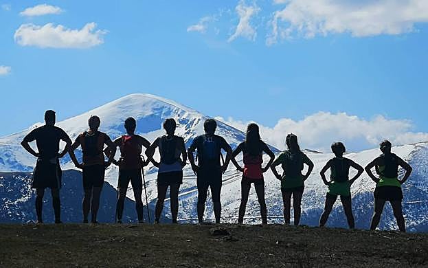 Roberto Gutiérrez Entrenando la ultra trail de La Rioja frente a la cumbre del San Lorenzo.