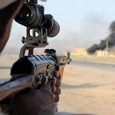 Un voluntario chií de la milicia Brigadas de Hizbulá apunta su rifle durante combates contra militantes del grupo Estado Islámico