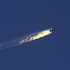 Captura de vídeo que muestra al avión al ser derribado cerca de la frontera entre Siria y Turquía.