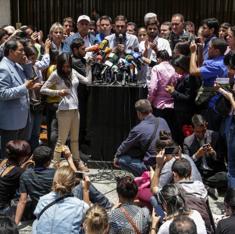 Los opositores venezolanos ofrecen una rueda de prensa.