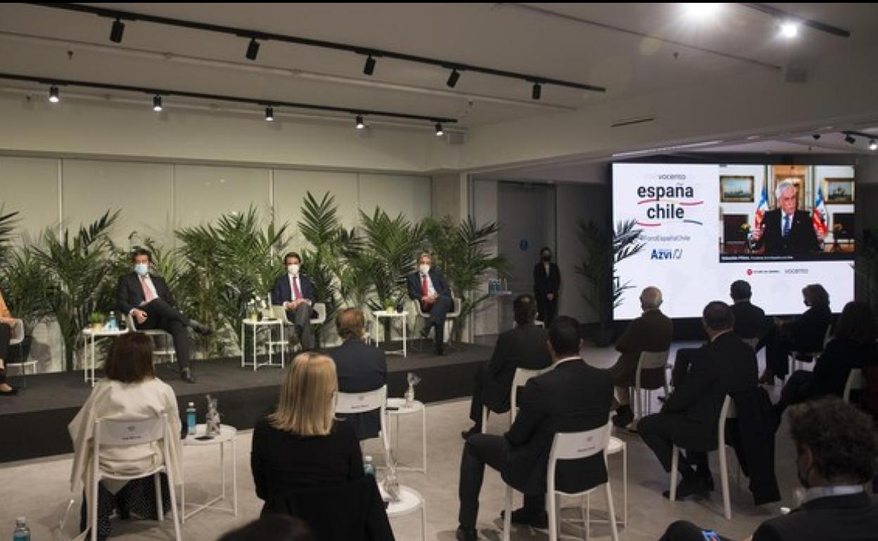Con la participación del presidente de Chile, Sebastián Piñera, del expresidente del Gobierno de España José María Aznar y del presidente del grupo Azvi, Manuel Contreras Caro, se celebró este jueves el Foro Vocento España Chile, un evento celebrado para abordar algunas de las cuestiones más apremiantes para el país sudamericano, como el exitoso proceso de vacunación, que ha sido posible gracias a una compra audaz de vacunas, o las próximas elecciones, con la apertura de colegios electorales los días 10 y 11 de abril, para elegir a la Convención Constituyente que redactará una nueva Carta Magna.