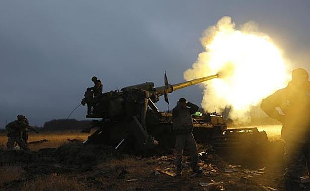 Soldados ucranianos en la línea del frente en Bajmut. Reuters
