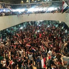 lLos manifestantes, en la sede del Parlamento iraquí en Bagdad.