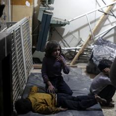 Varios niños en un hospital de campaña tras el ataque aéreo en Douma (Siria).