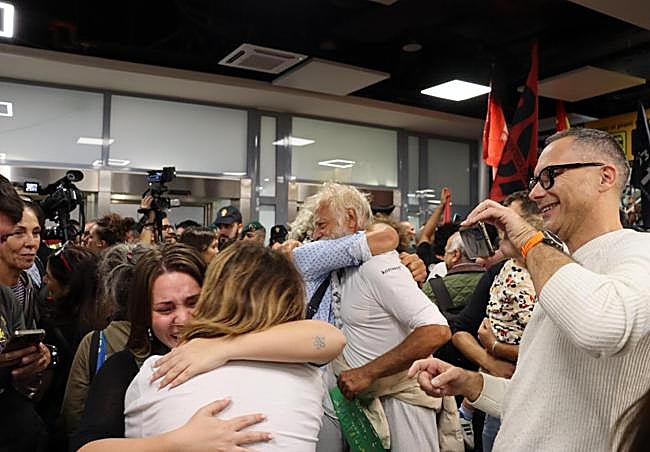 Deportados por Israel, 137 activistas de la Global Sumud Flotilla llegaron ayer a Estambul en un avión fletado por el Gobierno turco. Reuters