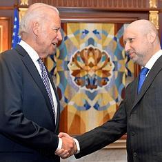 Biden se reunió antes con el presidente interino, Alexandr Turchínov, quien ha acusado hoy a las milicias prorrusas de violar los acuerdos de Ginebra al hacerse con el control de la sede de la policía en la localidad de Kramatorsk.