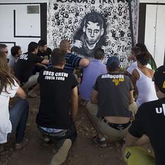 Jóvenes logroñeses rinden un homenaje a 'Puskillas' con un grafiti