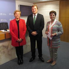 La consejera ha presentado esta actividad en una rueda de prensa, en la que ha estado acompañada por el delegado del Gobierno de La Rioja, Alberto Bretón; y la coordinadora de la Fundación San Millán, Almudena Martínez.
