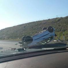 Un coche ha quedado volcado esta mañana en plena AP-68, tras un accidente ocurrido sobre las 9.30 de la mañana en el término de Arrúbal.
