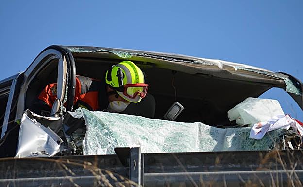 En la furgoneta viajaban un padre y sus dos hijas. Una de las pequeñas, de once años, ha fallecido en el accidente. El hombre, de 49 años, y la otra niña, de 6, han quedado atrapados en la furgoneta, y los bomberos han tenido que rescatarles.