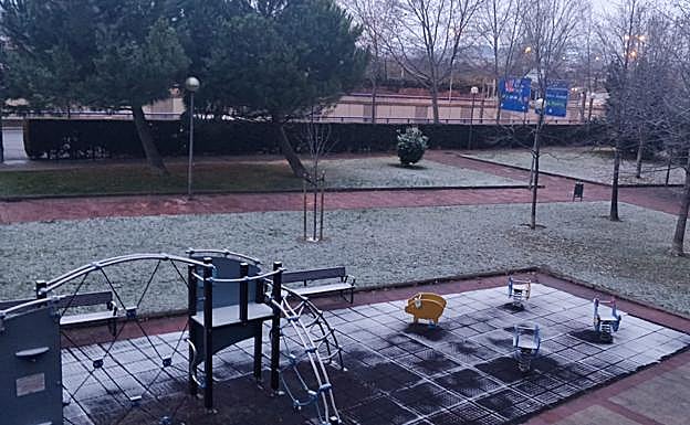 Logroño ha amanecido con una fina capa de nieve ya que ha nevado en algún momento durante la noche y el frío ha ayudado a conservarla.