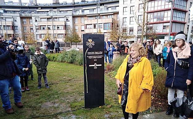 Un grupo de vecinos acude a la inauguración de un parque en Irún en homenaje a la joven asesinada en 2008 en Pamplona, por su relación con el pueblo riojano