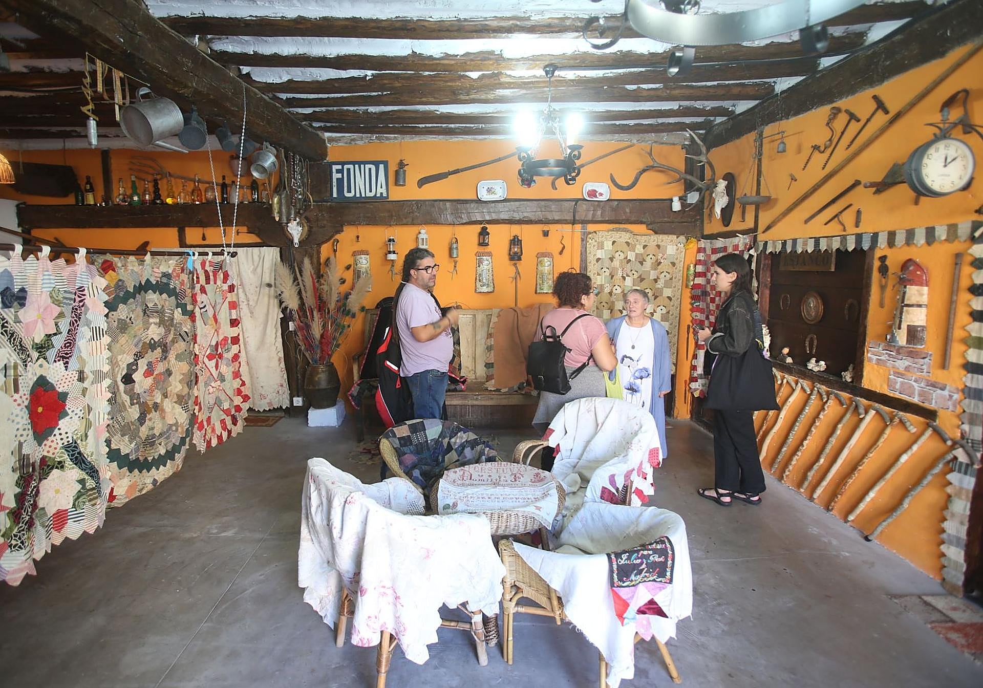 Marga Barrio condujo a los visitantes primero al Zaguán de la Fonda, donde existe un particular museo etnográfico con algunas de las almazuelas más antiguas del valle del Iregua. En las explicaciones Barrio describió las diferentes técnicas, como el pieceo, y también los motivos, porque, además de cuadros y hexágonos, hay quien se atreve con escenas figurativas, como un humedal. En realidad, subrayó Barrio, esta fiesta es un homenaje a las mujeres como transmisoras de esta artesanía.