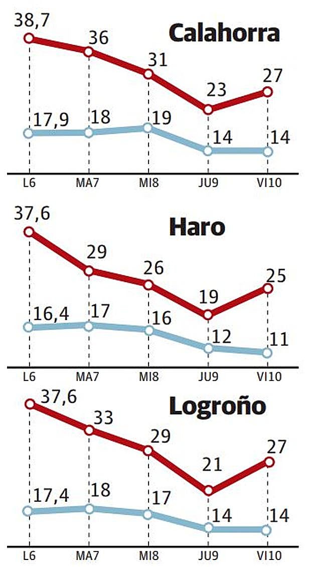 Eso sí, a partir del viernes, los pronósticos indican que, poco a poco, La Rioja irá recuperando los valores propios del verano, aunque en ningún caso se espera que se alcancen los 30 grados. Y así se mantendrá la meteorología hasta el domingo, porque a partir del lunes se augura una nueva caída de las temperaturas, más destacada en las máximas que en las mínimas.