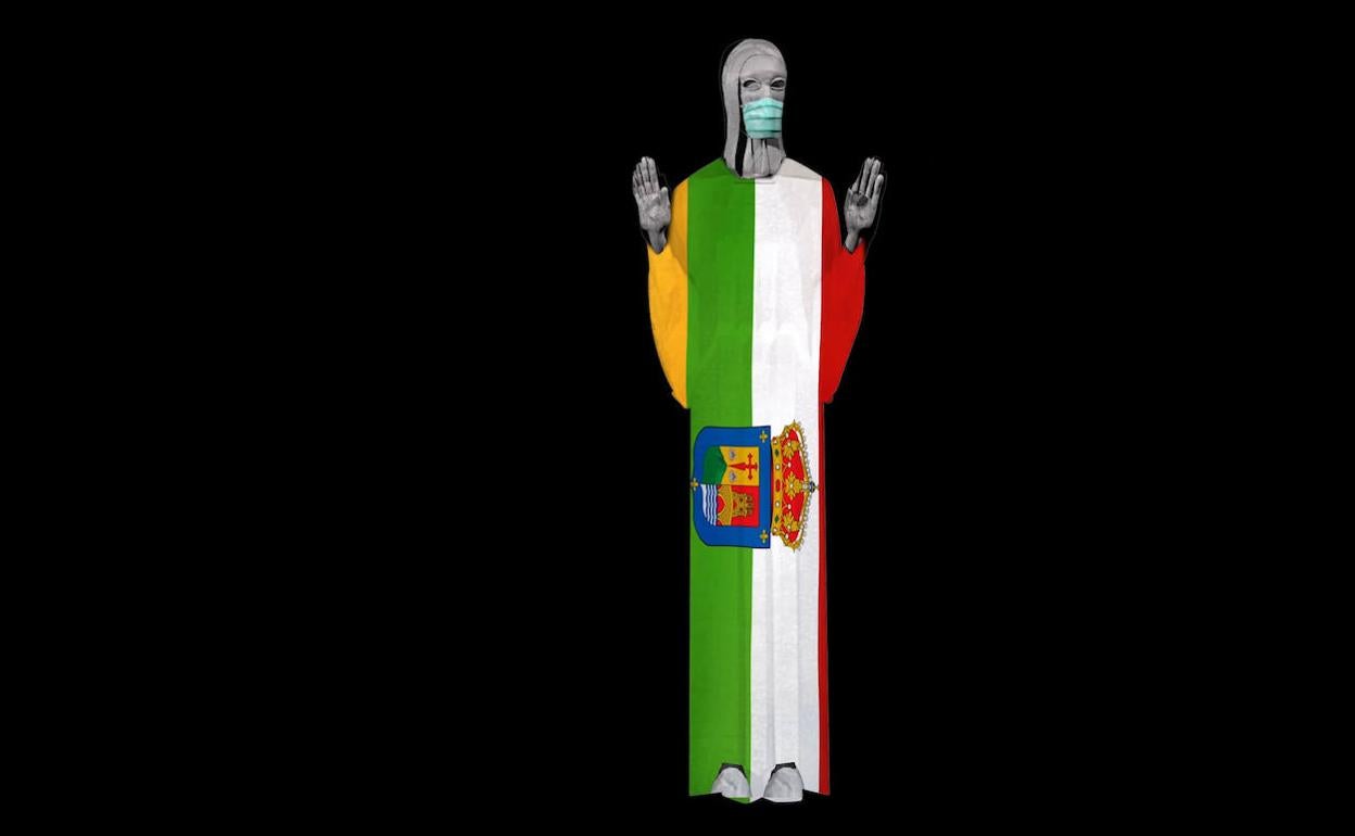 La bandera de La Rioja fue la primera que se proyectó este jueves sobre la imponente figura del Cristo del Otero de Palencia, en un videomapping promovido por el Ayuntamiento palentino como homenaje a las víctimas del COVID-19, tal y como que se hizo hace unos días en el Corcovado de Río de Janeiro.