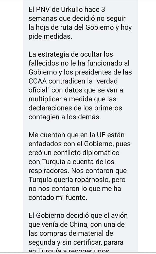 «Ceniceros tiene que pedirle que dimita y si el señor Casado no interviene se estará poniendo al margen de la legalidad», ha afirmado. «Hoy ha dado un paso que roza lo que es intolerable. Solo le queda dimitir y al PP una salida honrosa, sumarse al gran acuerdo, en lugar de insultar a los adversarios políticos con algo tan lamentable como son las muertes», ha concluido.