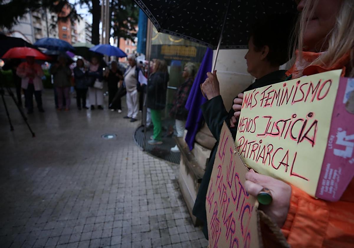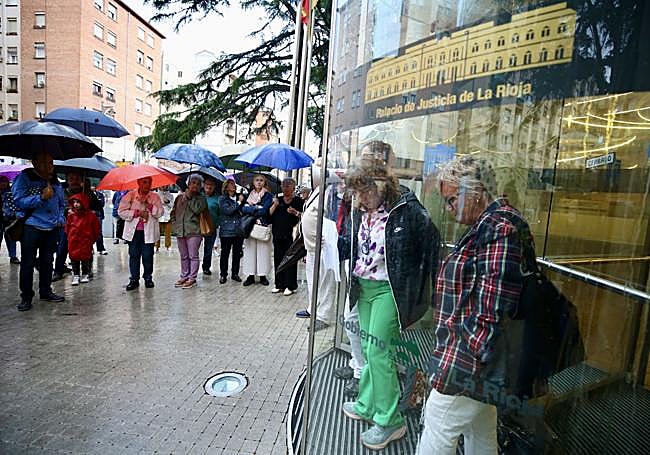 Apenas 70 personas se concentraron, bajo la lluvia, en la puerta del Palacio de Justicia de La Rioja para condenar las agresiones a la mujer de Albelda y la puesta en libertad de sus agresores. Y entre las caras conocidas apenas se pudo ver al edil Rubén Antoñanzas, al profesor de la UR Julio Rubio y la exdirectora general de Participación y Derechos Humanos Sara Carreño.