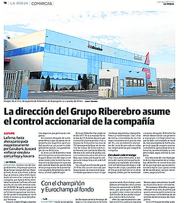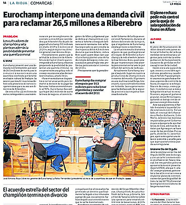 La cooperativa Eurochamp (con sede en Autol) y la comercializadora Riberebro (con sede en Alfaro) llegan a un acuerdo para constituir una 'joint venture', garantizar ... el futuro del sector del champiñón y competir con los gigantes del mercado mundial.