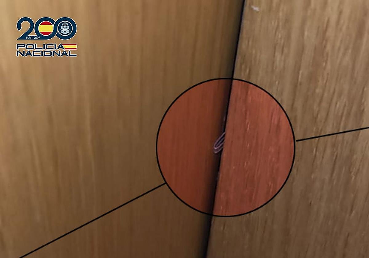 Los policías realizaron una inspección por el edificio y comprobaron que existían varias puertas marcadas con un hilo de pegamento y palillos, casi inapreciable para el ojo humano.