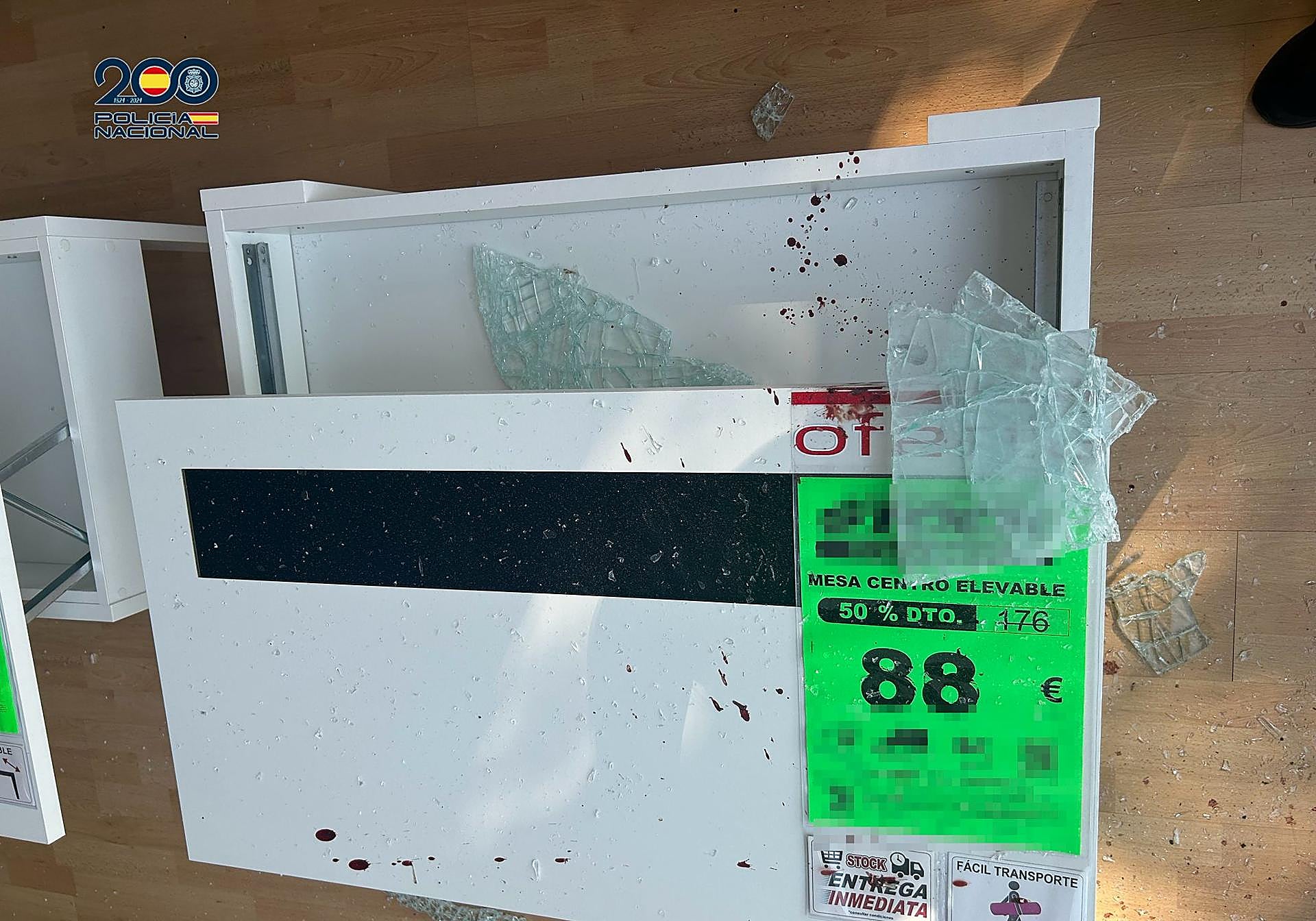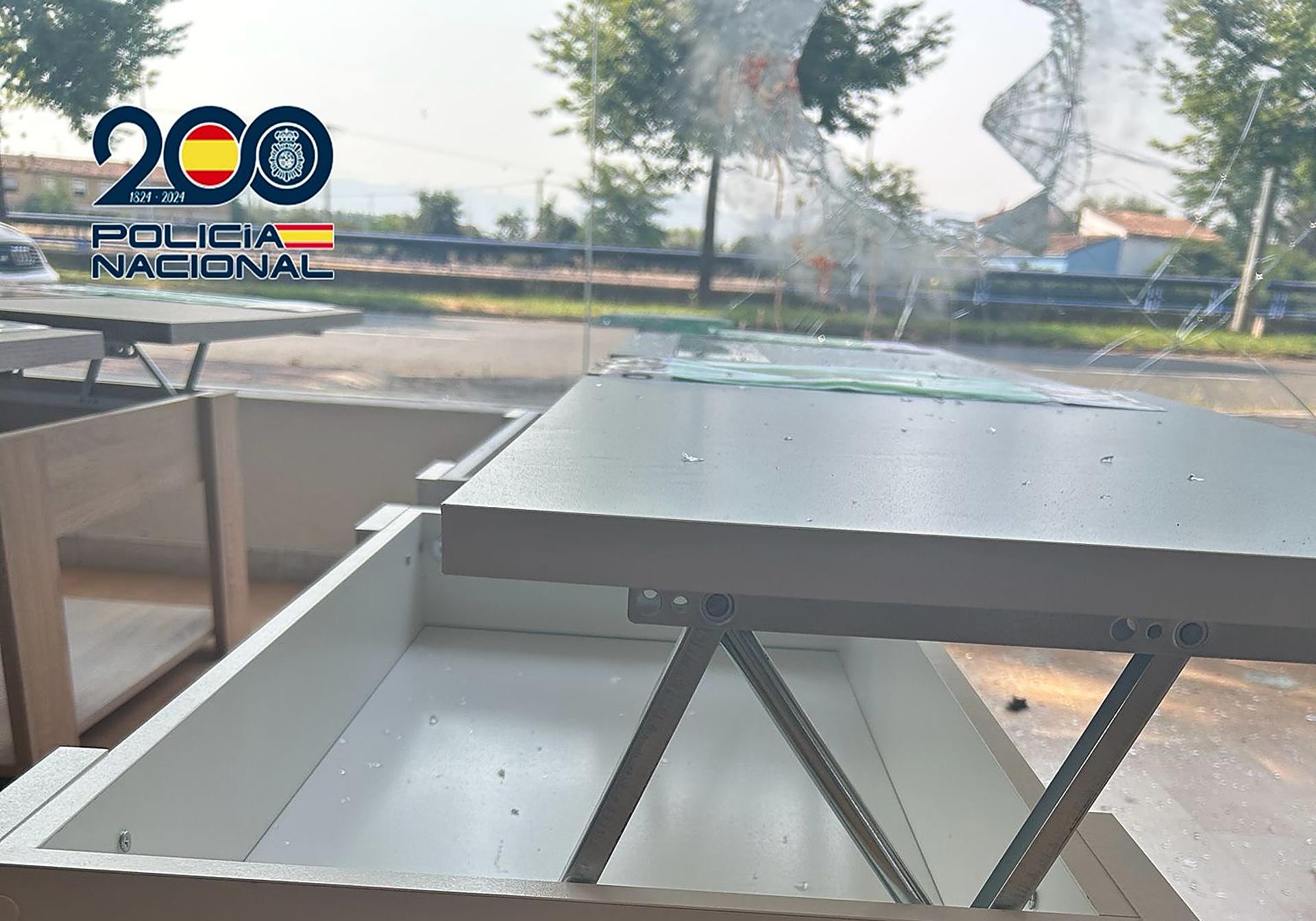 El otro de los hechos tuvo lugar en esta misma fecha en una establecimiento de venta de muebles y la forma de acceso fue la misma, fractura del escaparate con la tapa de una alcantarilla cercana. Y el presunto autor causó diversos daños en los muebles del interior valorados en 1.000 euros.