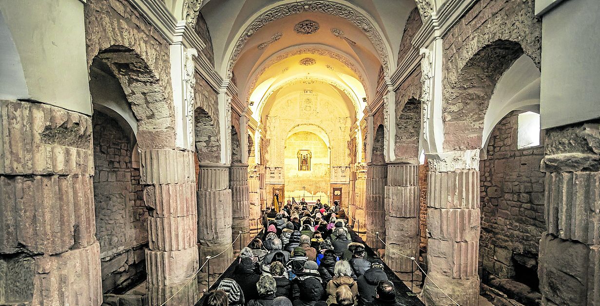 A simple vista, parece Santa María de Arcos una enciclopedia alocada de estilos artísticos, con esas yeserías barrocas que se derraman sobre los fustes estriados. Las piezas distintas han acabado componiendo un puzle extrañamente armónico, cuyos orígenes hay que buscarlos en esos siglos confusos que vieron el desplome del Imperio Romano, la invasión de los bárbaros y el triunfo del cristianismo. Para algunos autores se trata de uno de los templos más antiguos de la península –una basílica de tres naves ubicada sobre los restos de un viejo mausoleo–, aunque otros especialistas difieren su construcción a los años de reconquista. Se trata, en cualquier caso, de uno de los monumentos más singulares de La Rioja.