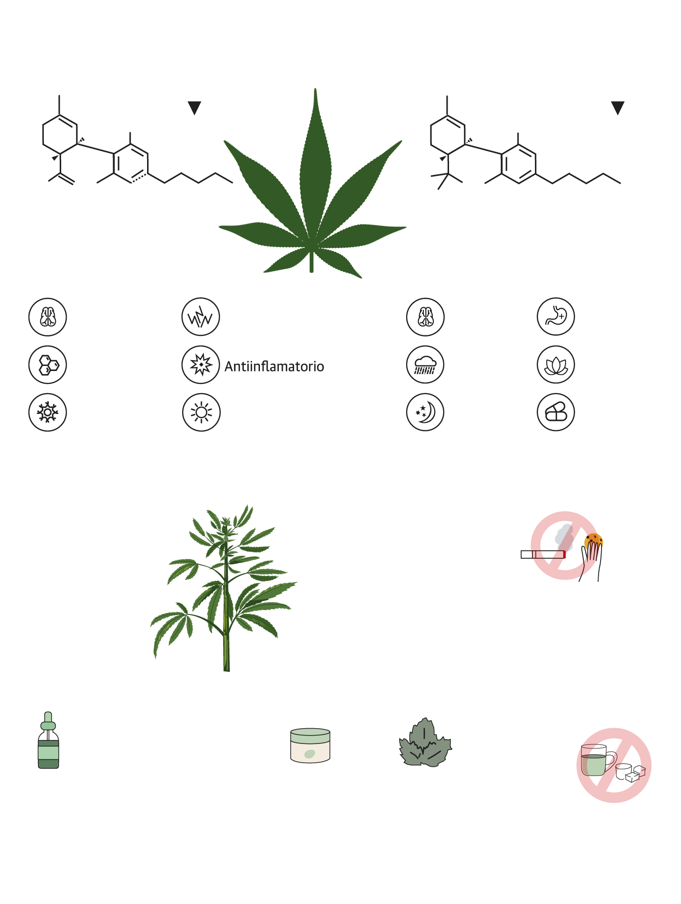 Efectos del THC: Consciencia alterada, distorsiona la percepción,