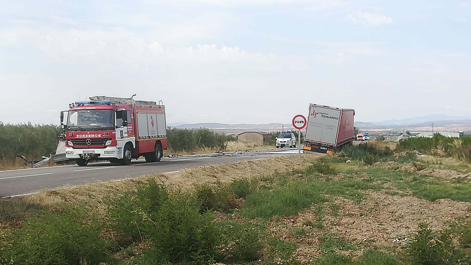 El choque ha sido fronto-lateral con el camión que se dirigía de Alfaro hacia Grávalos, cuyo conductor ha resultado ileso.