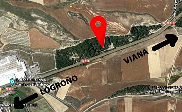 Dos mujeres, de 49 y 36 años y vecinas de Logroño y Villamediana respectivamente, fallecieron este jueves en un accidente de tráfico ocurrido en la Nacional 111, a su paso por el término municipal de Viana (Navarra). Dos vehículos colisionaron frontalmente pasadas las 22.15 horas en la zona de pinares, en el punto kilométrico 84,3 de la carretera, a apenas unos centenares de metros del término municipal de Logroño. Las fallecidas son las conductoras de ambos turismos.