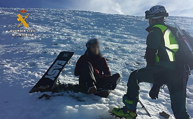Además, la Guardia Civil ha informado de otro rescate, un hombre de 20 años con escasos conocimientos en montaña y falto de equipación, se quedó bloqueado en una placa de hielo mientras realizaba snowboard
