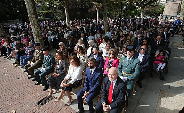 La concha del Espolón de Logroño ha acogido este jueves la celebración de la festividad de los Santos Ángeles Custodios, patronos de la Policía Nacional. Como es habitual, en este solemne acto se impusieron las condecoraciones al mérito policial tanto a integrantes de la Policía Nacional como a personas que han destacado en su contribución a la mejora de la imagen policial. Es el caso de cinco reconocimiento externos por una «actuación singular y extraordinaria» a Fernando Martínez Soba (coordinador de Trasplantes en La Rioja), Enrique de la Iglesia (abogado del Estado), José Enrique Guerrero (comandante jefe de la UOPJ), Ángel Lozano (jefe de la Compañía de Plana Mayor y Servicios de Batallón de Helicópteros de Maniobra III de Agoncillo) y Roberto Jesús Rodríguez (brigada de la GAR).