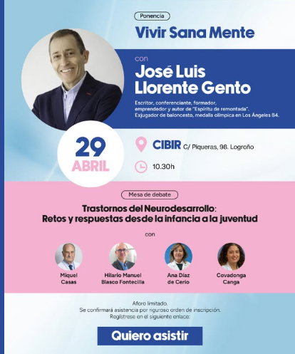 Tras la ponencia de Llorente, está programada la mesa de debate 'Trastornos de neurodesarrollo: retos y respuestas desde la infancia a la juventud'. Moderada por Carlos Santamaría, está previsto que intervengan la psiquiatra, jefa del servicio de Salud Mental infanto juvenil del Seris, Ana Díaz de Cerio; el psiquiatra de la infancia y adolescencia y profesor e investigador en UNIR, Hilario Manuel Blasco Fontecilla; el catedrático de psiquiatría, Miquel Casas; y la psiquiatra del niño y del adolescente de la Clínica Universidad de Navarra, Covadonga Canga.