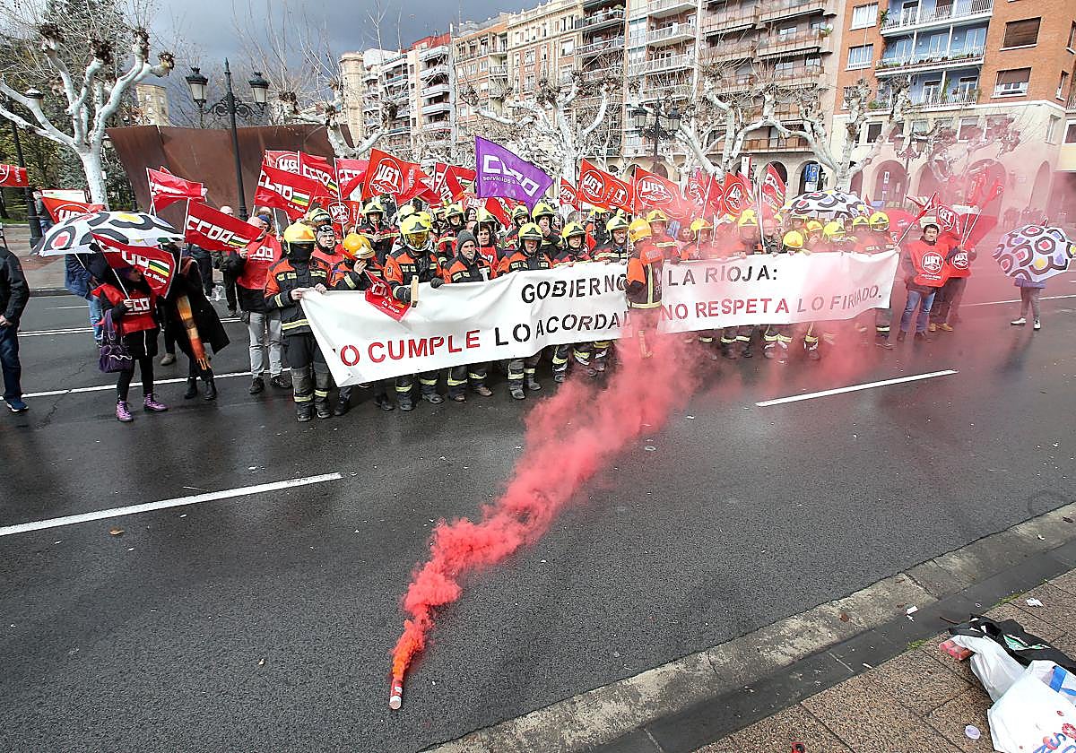 La convocatoria, en cualquier caso, no ha sido baladí. De hecho, ha sido de las más sonoras de las celebradas hasta ahora. Todos ellos querían que se les escuchara y, por eso, han acompañado los carteles 'Capellán te miente, el gerente pirómano de bomberos CEIS, cuándo te darás cuenta????' y la pancarta 'El Gobierno de La Rioja no cumple lo acordado. No repeta lo firmado' con el sonoro ruido de las carracas, los silbatos, las alarmas, los petardos, y hasta una bocina, acentuada con un altavoz. No solo eso: también han portado un bote de humo y bengalas de color rojo, mientras coreaban 'Más bomberos, menos embusteros', lo que ha causado la expectación de los viandantes que pasaban por la zona.
