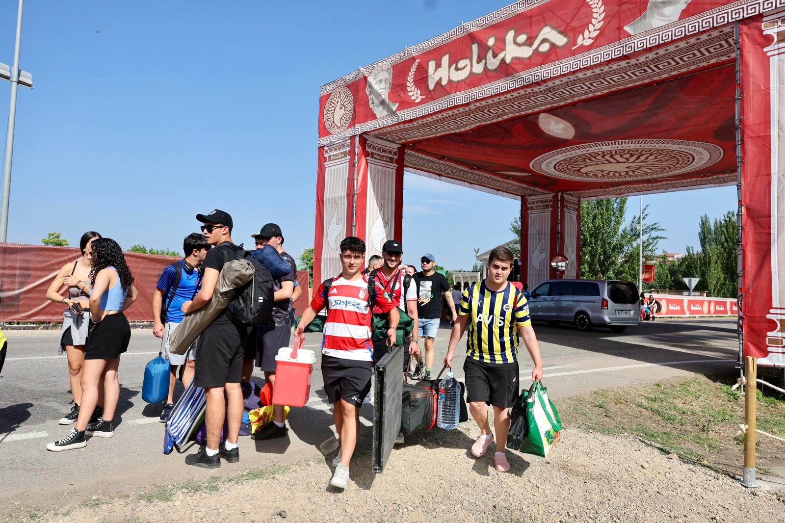 Los jóvenes que acuden al Holika desgranan los enseres que llevan al festival y los artistas a los que les gustaría escuchar. «Duki, Ozuna, Disobey...», apuntaban algunos de ellos