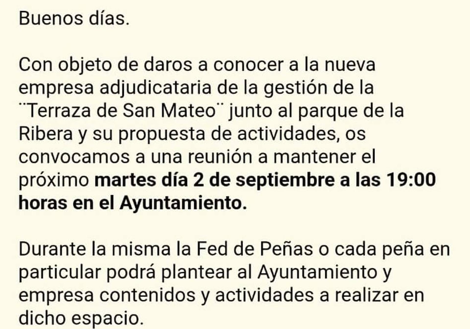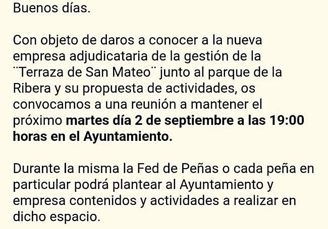 El PR+ ha tenido acceso a un correo en el que Miguel Sáinz cita a los colectivos de las fiestas para conocer a la empresa que llevará el espacio, con Boal Eventos como única oferta presentada