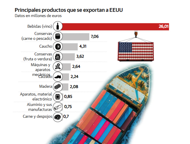 Las exportaciones riojanas a Estados Unidos caen el 9,5% durante el primer semestre de 2025