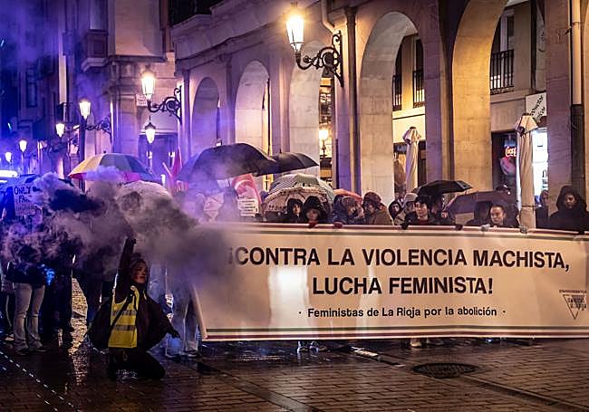 Una concentración en El Espolón y una marcha por el centro de Logroño reinvindicaron por separado medidas para atajar la lacra machista