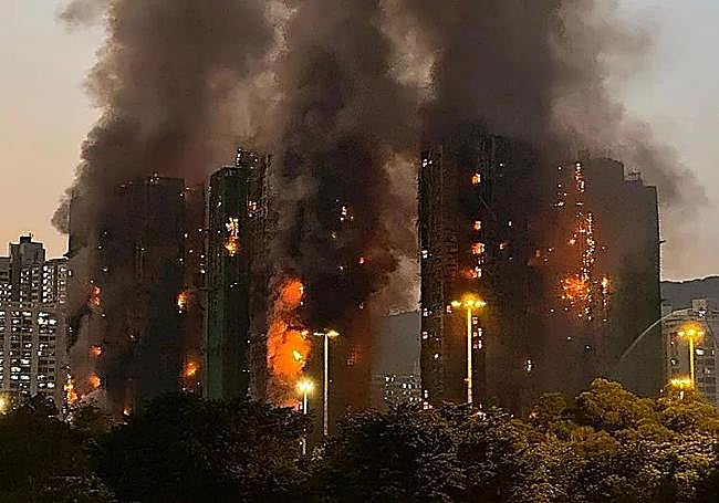 Las llamas se han propagado con rapidez por el andamiaje de bambú que rodeaba las torres del complejo, donde residen unas 4.000 personas. Casi 300 permanecen desaparecidas