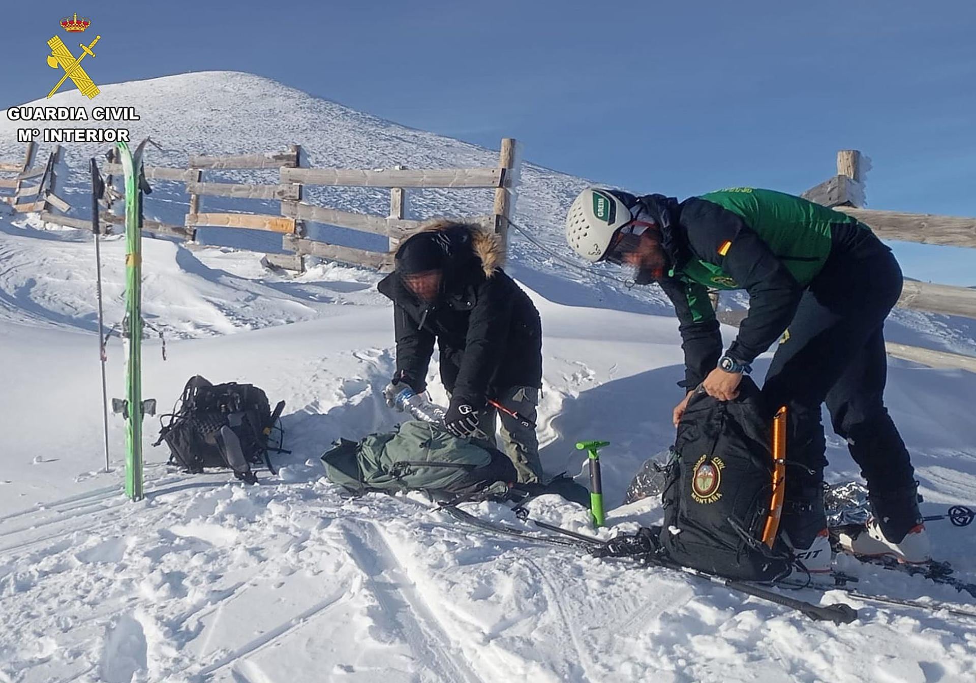 El pasado lunes el Grupo de Rescate e Intervención en Montaña (GREIM) de la Guardia Civil rescató a un joven a 1.800 metros de desnivel que pretendía coronar el San Lorenzo ... , después de haber pasado la noche a la intemperie. Unos esquiadores le habían recomendado bajar junto a ellos la tarde anterior y no les hizo caso. Fueron esos mismos esquiadores quienes advirtieron de la imprudencia a la Guardia Civil, cuyo GREIM tiene base en Ezcaray. Al día siguiente, de madrugada, los agentes salieron en su búsqueda y se lo encontraron en plena pista Campos Blancos, con el calzado congelado.