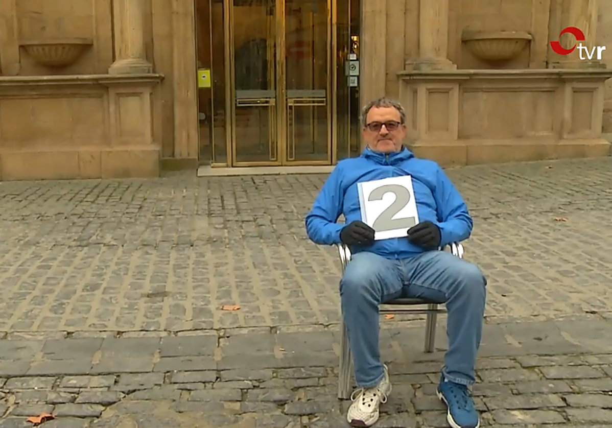 «Lo peor que llevo es el dolor de las articulaciones», narra César Vea en su segundo día de huelga de hambre frene al Parlamento de La Rioja. «No puedo tomar analgésicos porque el estómago está vacío, pero físicamente y mentalmente estoy bastante fuerte, de momento».