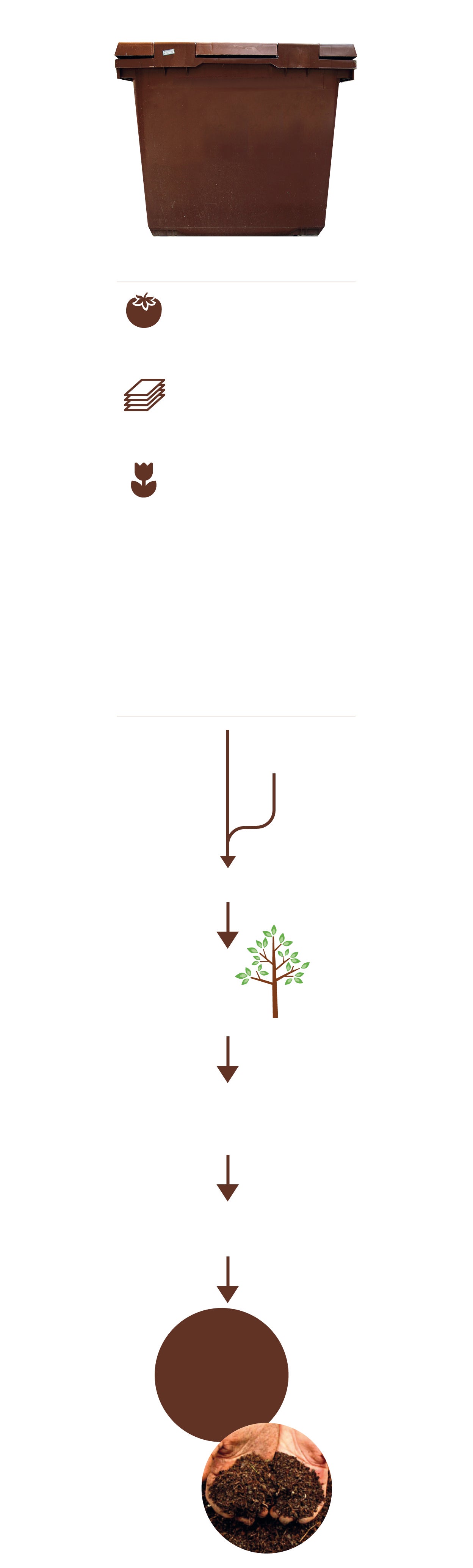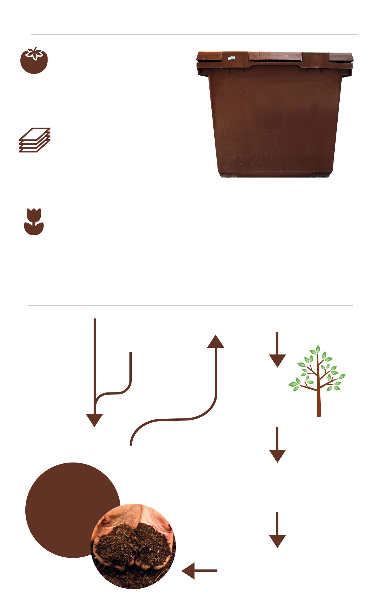 Los residuos orgánicos domésticos, si se reciclan, vuelven al campo convertidos en rico compost de alta calidad | Los residuos orgánicos deben depositarse en el contenedor marrón, siempre en bolsas compostables, para que tras un proceso de reciclaje se transformen en compost que aporte nutrientes a los campos