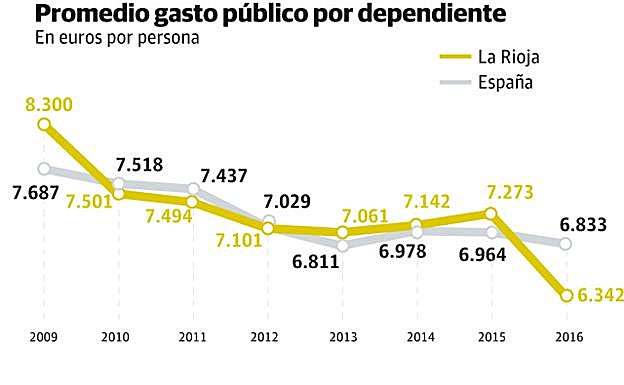 La Rioja fue una de las comunidades pioneras en poner la lupa sobre la dependencia, pero aún así, desde el 2009 hasta el 2016 la Administración regional ha reclamado 538.125,18 euros de prestaciones de dependencia indebidamente cobradas, la mayoría por no notificar el fallecimiento de un beneficiario.