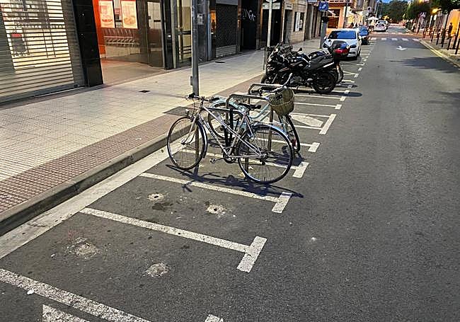 Pedro envía esta fotografía tomada el martes con varios soportes arrancados y no sustituídos en una zona «muy utilizada por los ciclistas». El lector comenta que «iba a dejar la bicicleta para hacer la compra y pensé que nos habían quitado espacio para dárselo a las motos que también aparcan al lado». «Puede también que sea un acto de vandalismo, pero lo cierto es que la solución de tapar el agujero con cemento no es de recibo», añade.