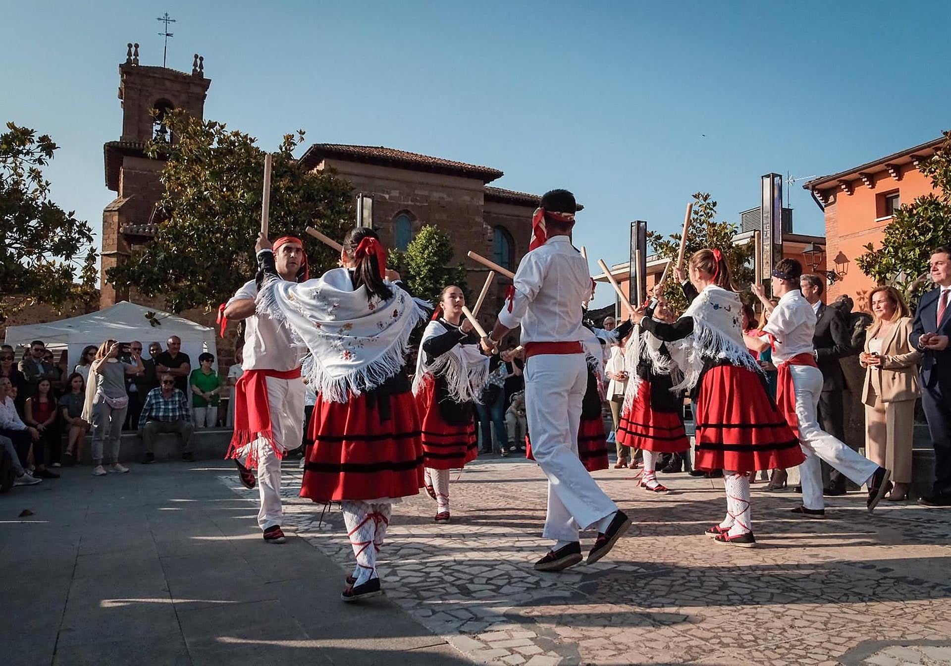 Este acto, que ha contado con muy buen tiempo durante toda la jornada, ha sido seguido por decenas de vecinos que han acudido a la plaza de la Convención y que han presenciado con una sonrisa el repertorio de actuaciones que han ofrecido los jóvenes del grupo de danzas de la localidad y los integrantes de la Escuela de Jotas del Gobierno de La Rioja.