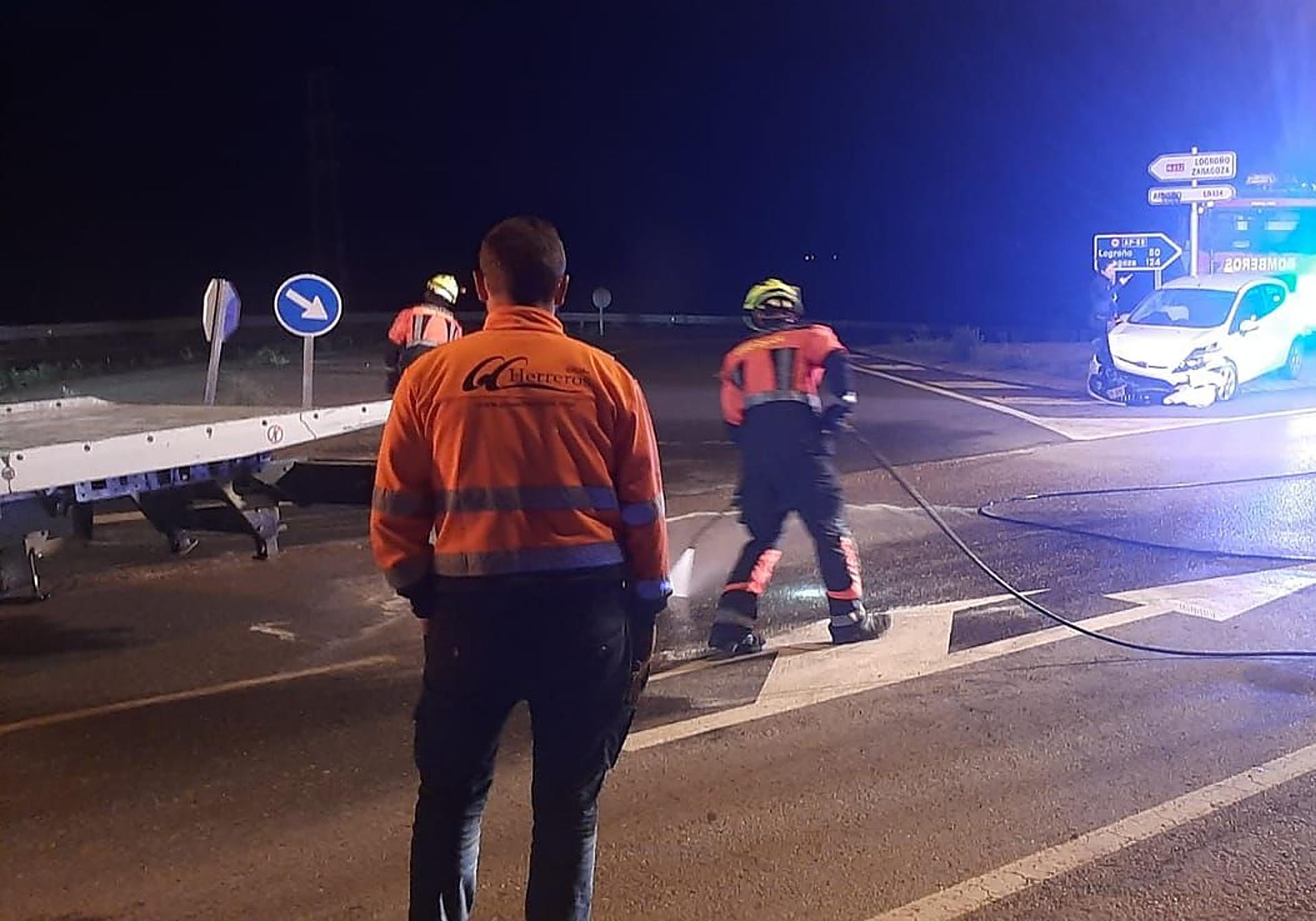 Un accidente en la avenida de Numancia de Calahorra, en el cruce donde se encuentran los carriles de entrada y salida a la carretera N-232, ha provocado la intervención este sábado de bomberos y Policía Local.