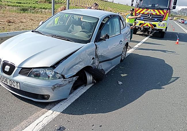 Dos turismos han chocado de manera frontolateral en Briñas. El accidente se ha producido este sábado, a las 17.30 horas, en el punto kilométrico 45 de la carretera N-124.
