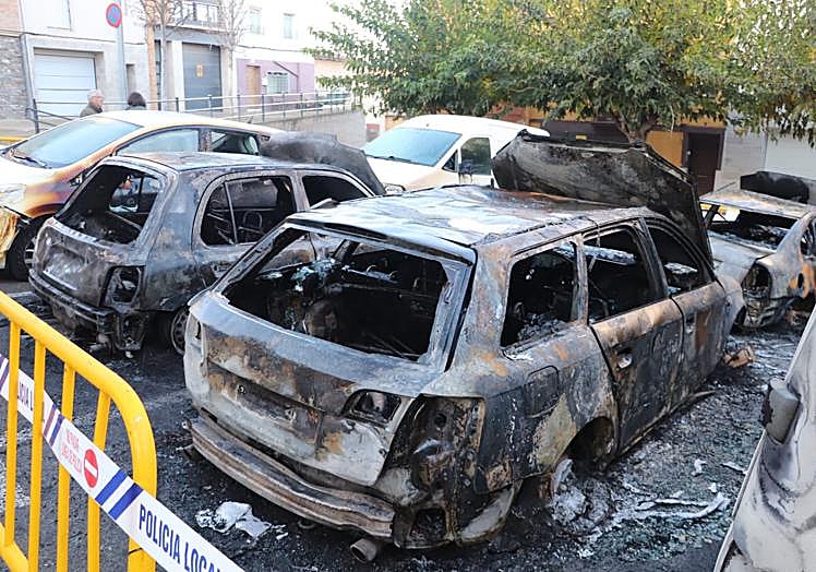 Sobre las 03.30 horas, el ruido de explosiones rompía el sueño de los vecinos de la plaza. Unos minutos después, la Policía Local recibía el aviso por parte de un vecino y una patrulla se desplazaba al lugar. A la par, daba aviso al Centro de Coordinación 112. En esos momentos, ardía un solo coche. «Los compañeros de la Policía Local intentaron apagar el fuego con extintores, pero había cogido tanta intensidad que no pudieron hacer más», describía el jefe del cuerpo municipal, Ignacio Olías.